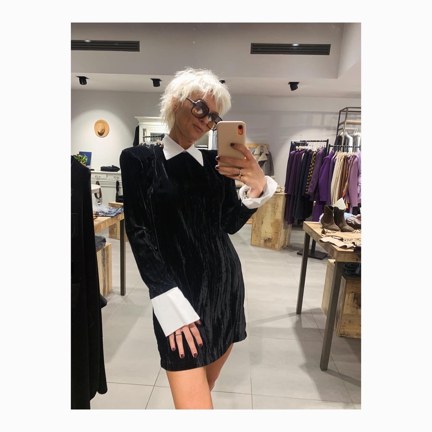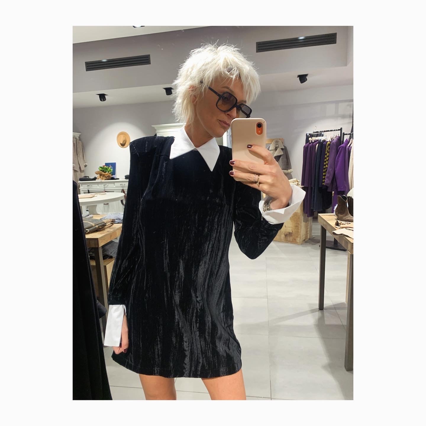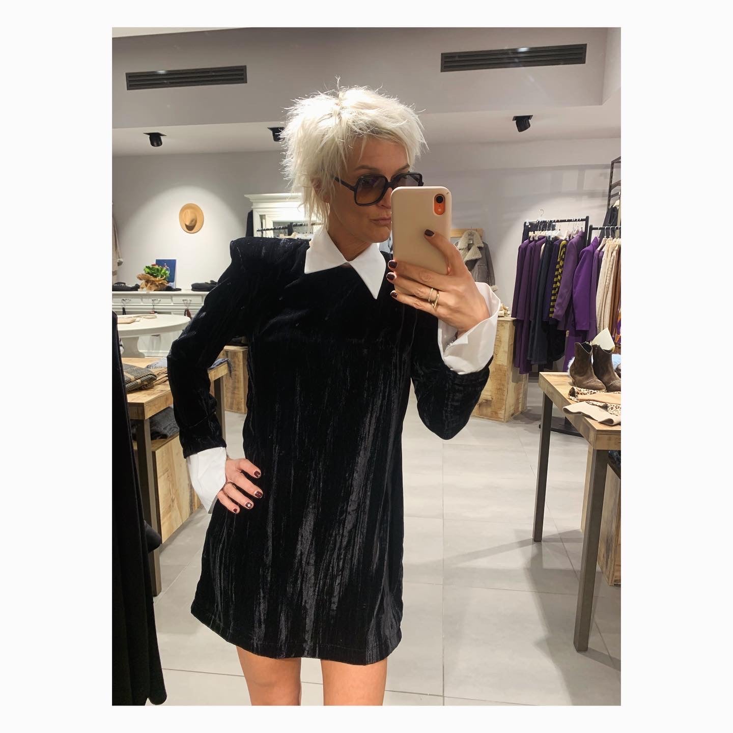 Abito in velluto con colletto stile camicia rimovibile. Vestibilità regolare.