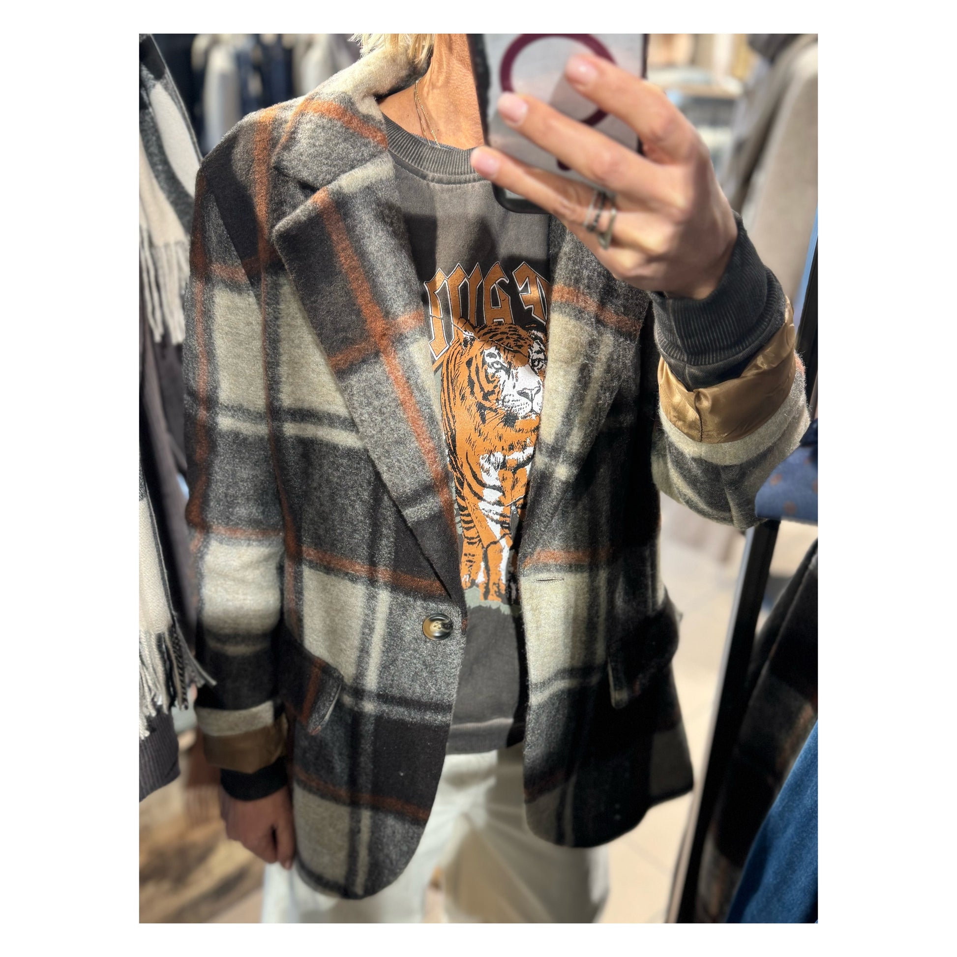 Cappotto in panno foderato. Modello stile blazer con fantasia check