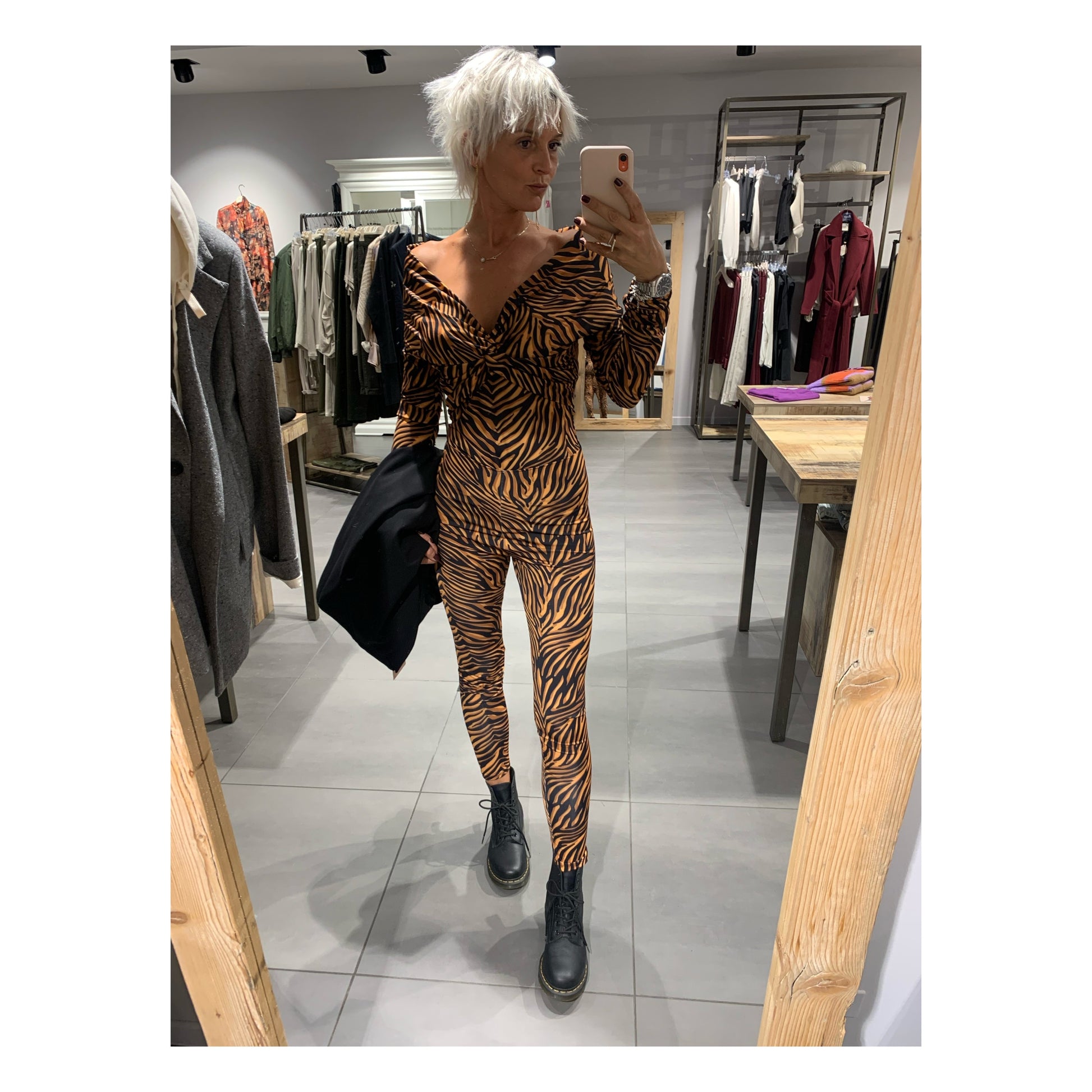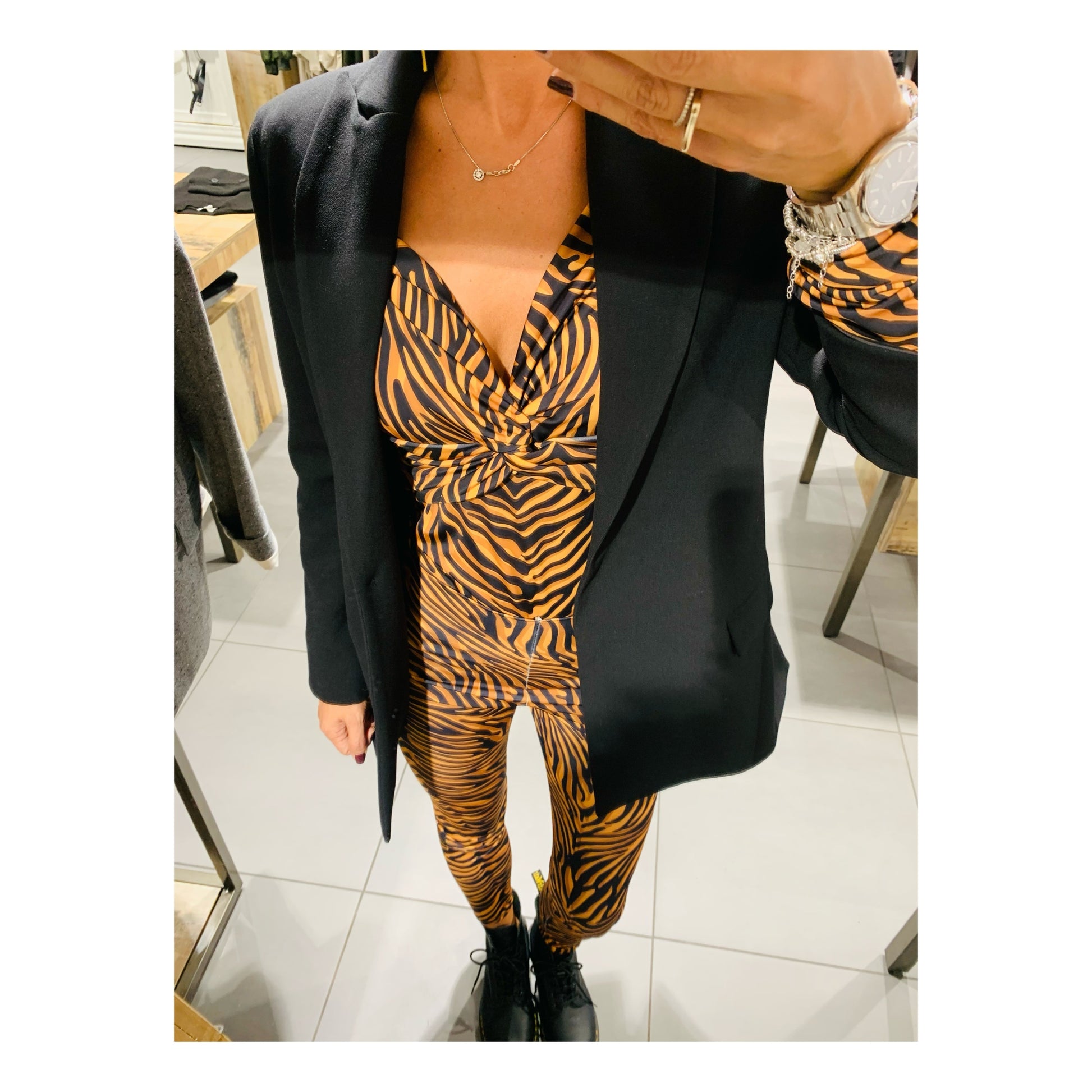 Completo body e leggins elasticizzato in fantasia tigrata.