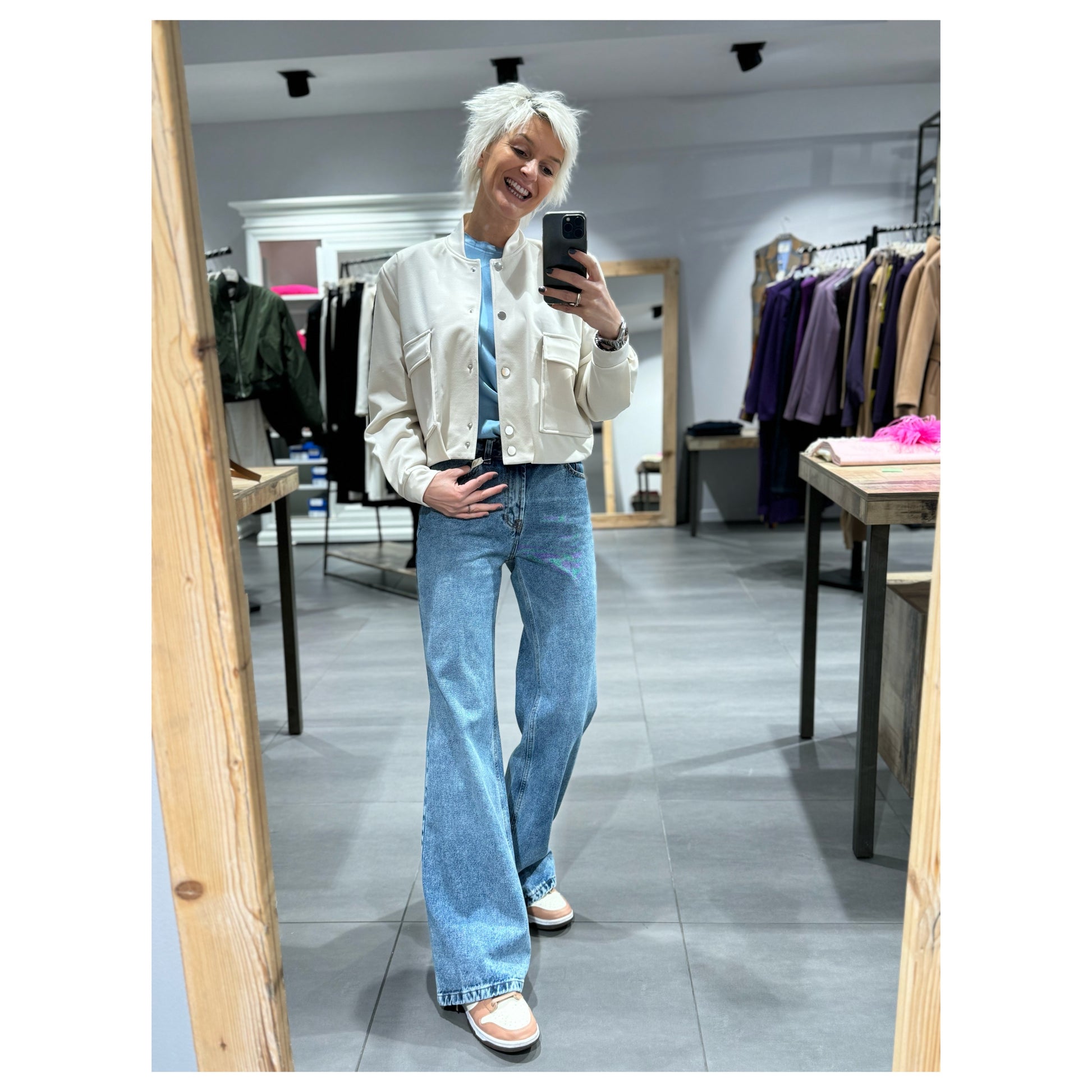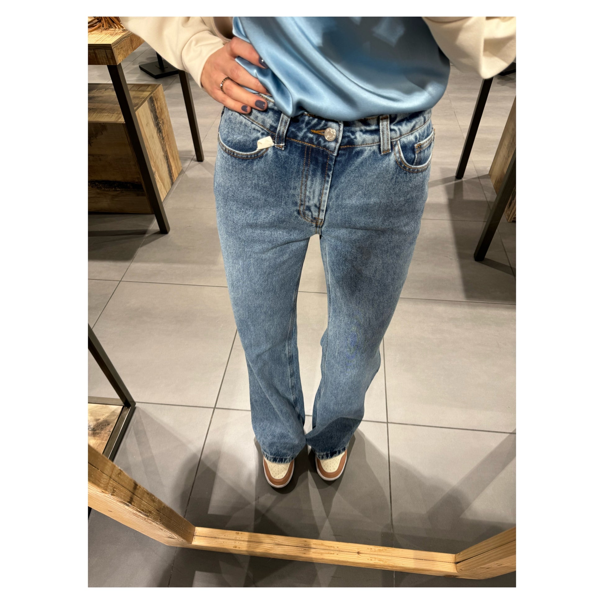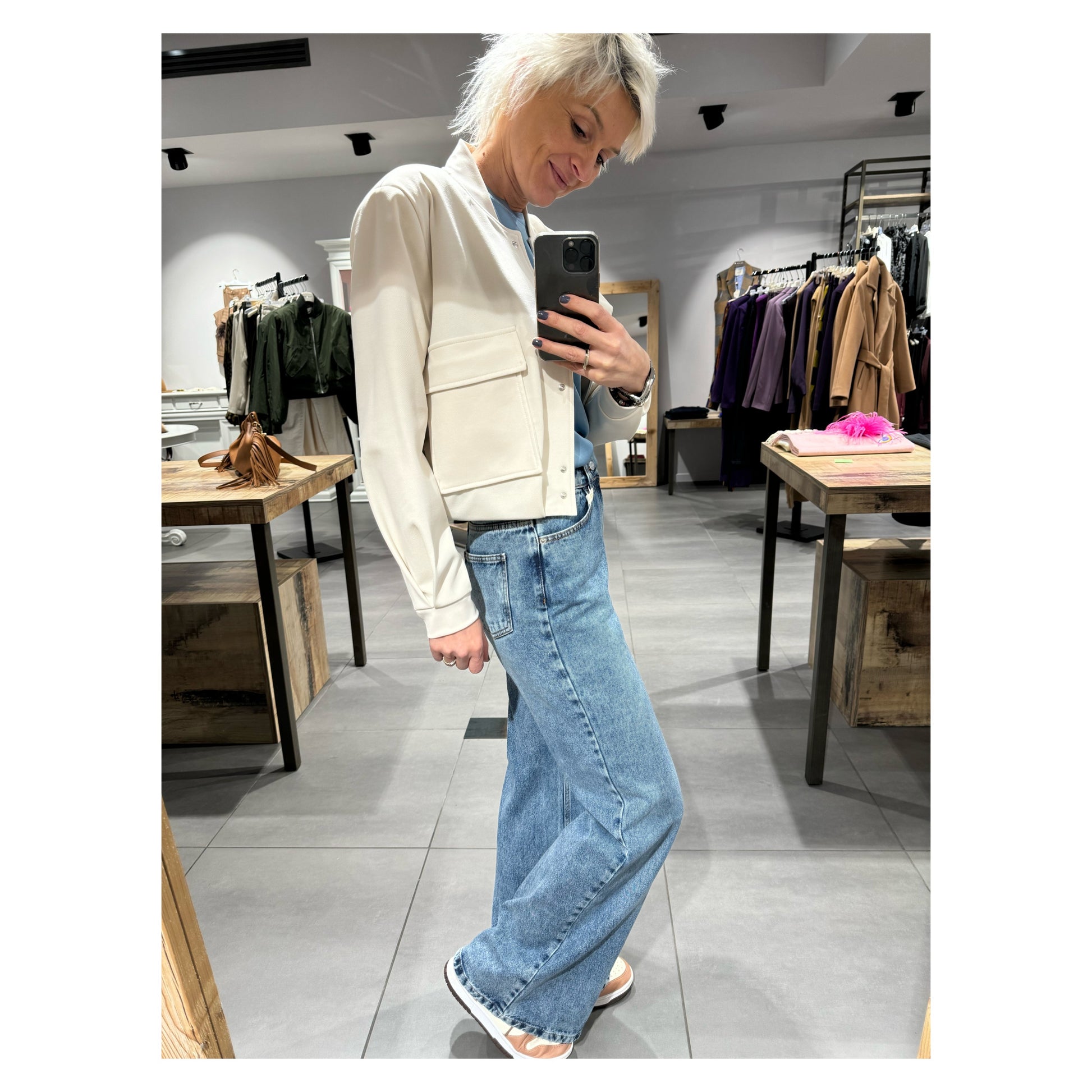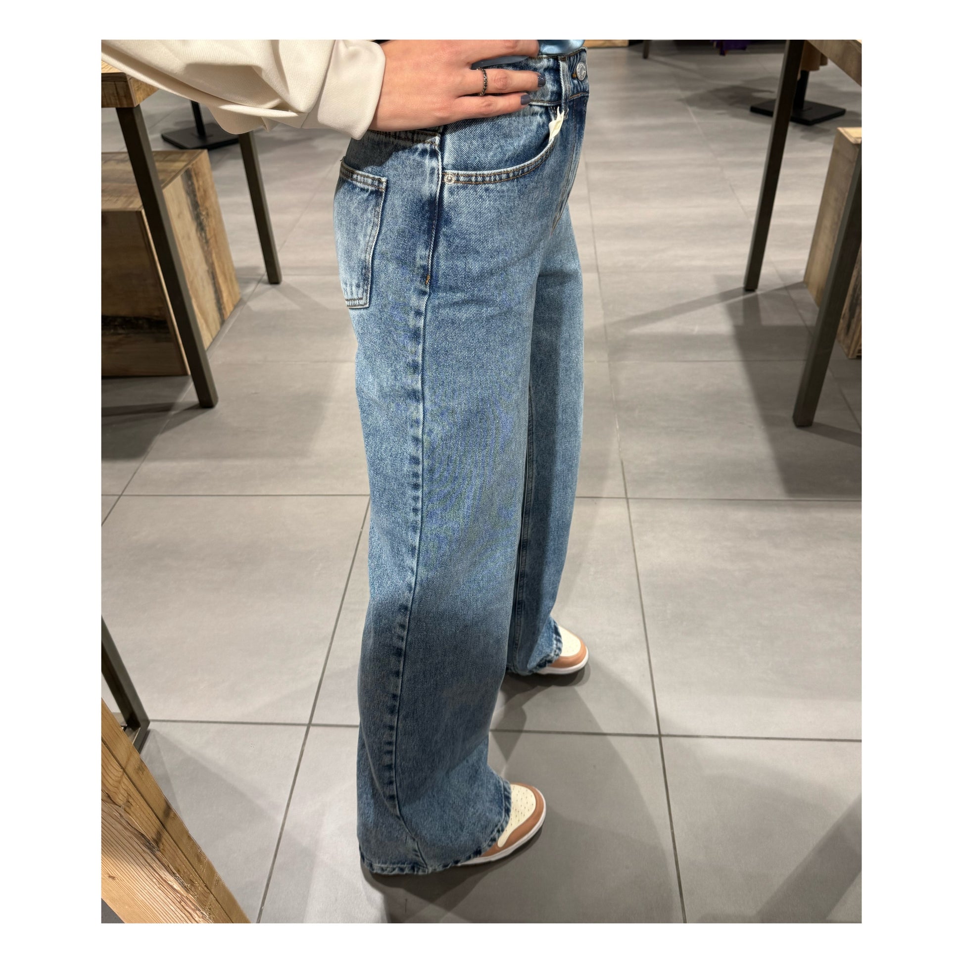 Jeans palazzo a vita alta e gamba over. Vestibilitá regolare.