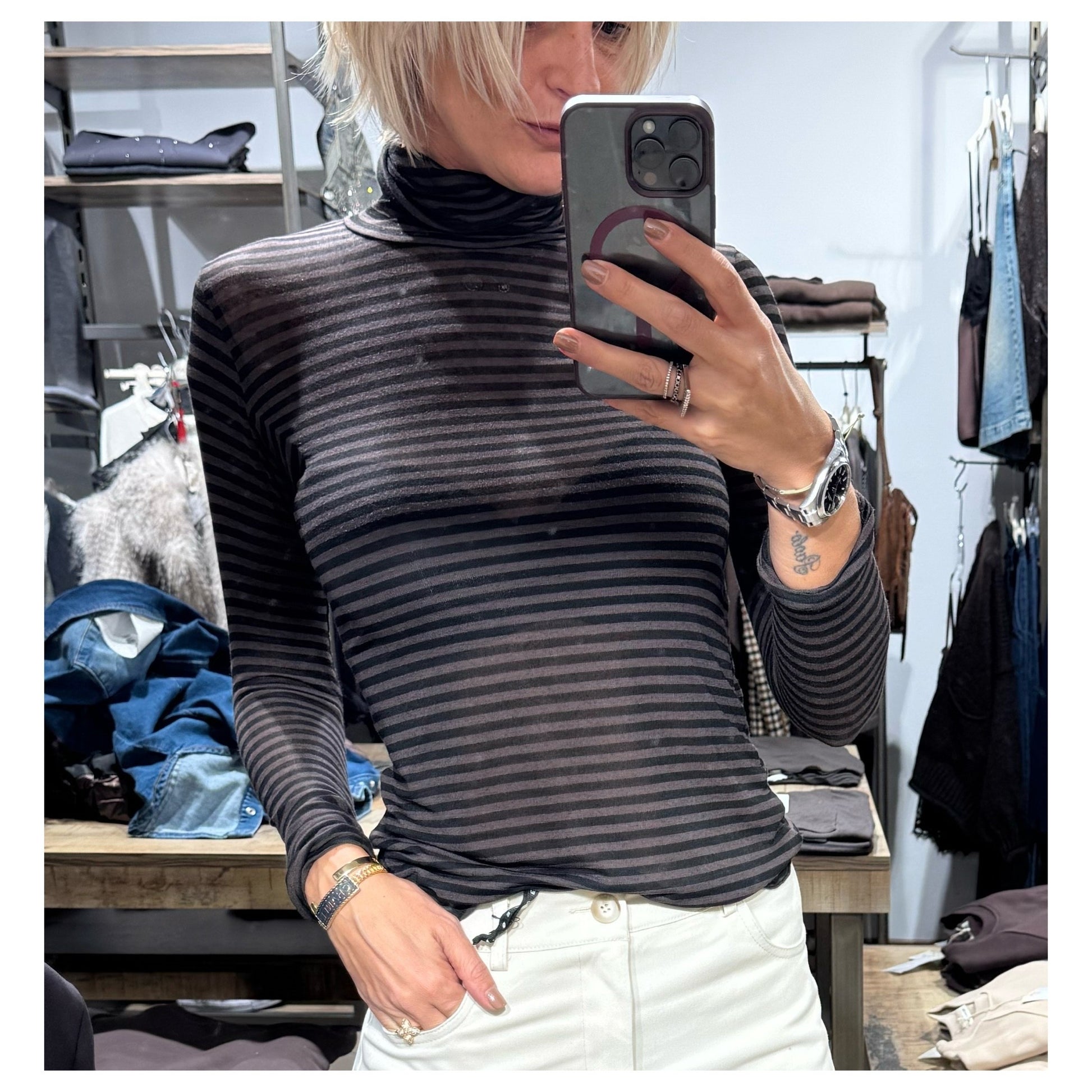 Dolcevita in misto cachemire caldo leggermente trasparente