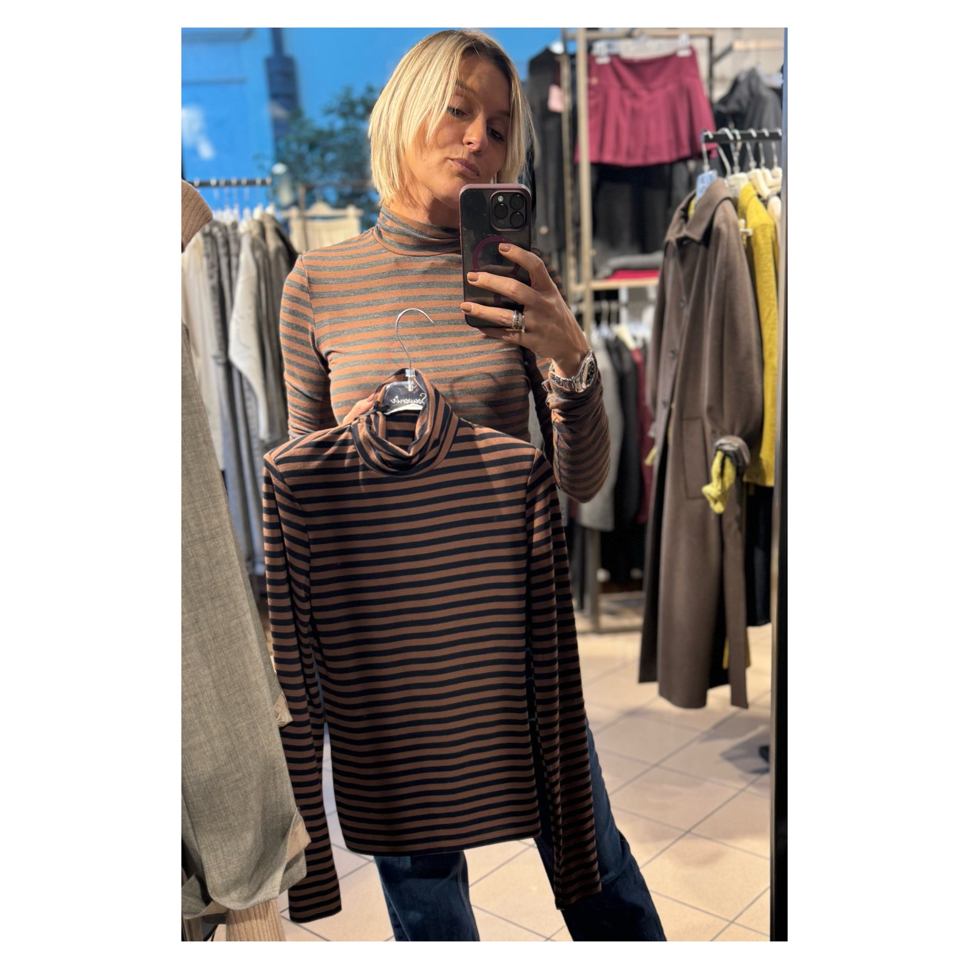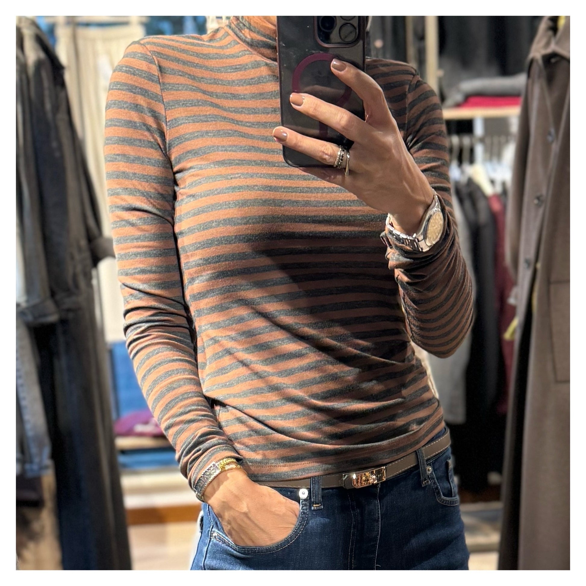 Dolcevita in misto viscosa calda leggermente elasticizzato con spallina rinforzata.