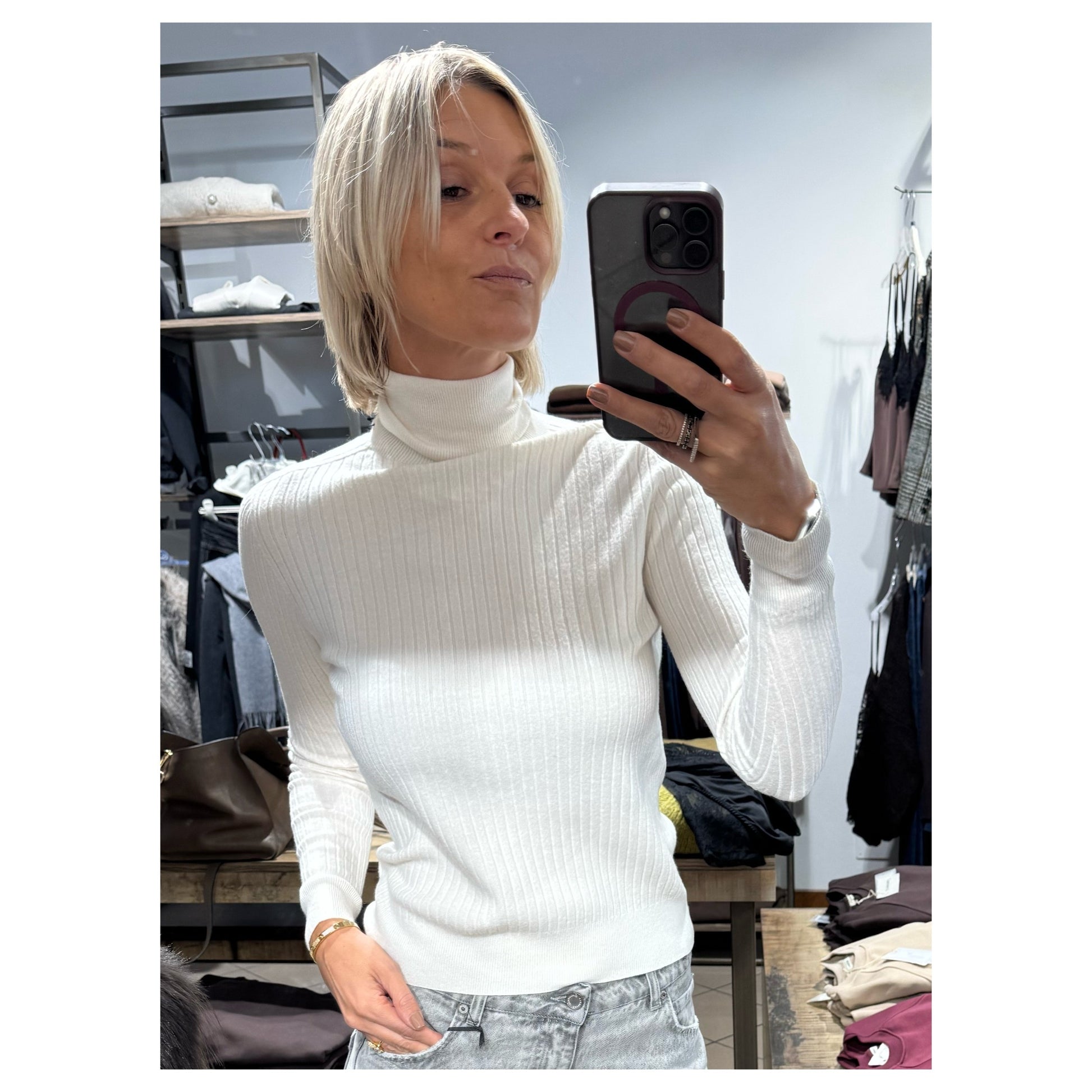 Dolcevita in misto viscosa calda leggermente elasticizzato a costina larga
