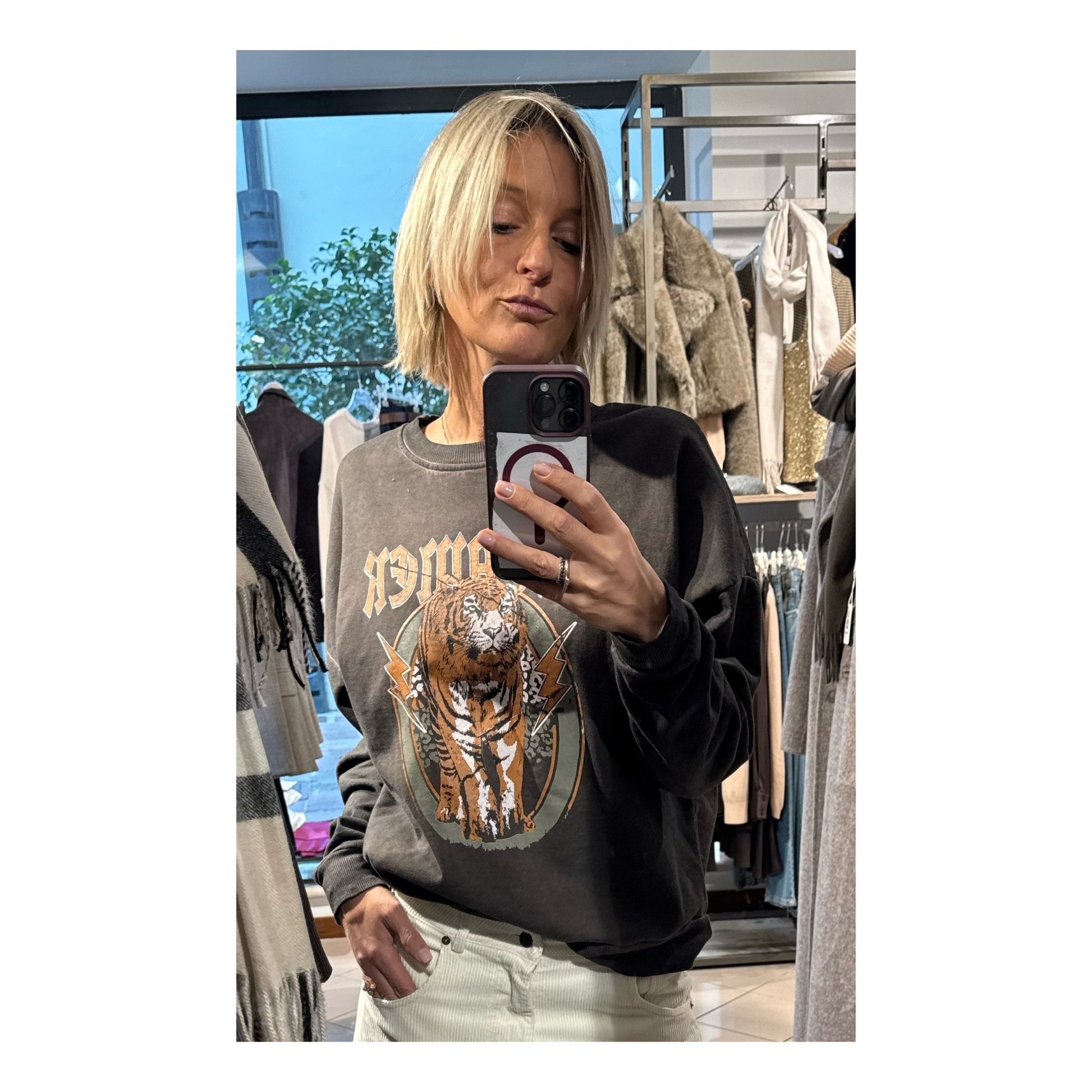 Felpa girocollo con stampa tigre. Modello morbido taglia unica