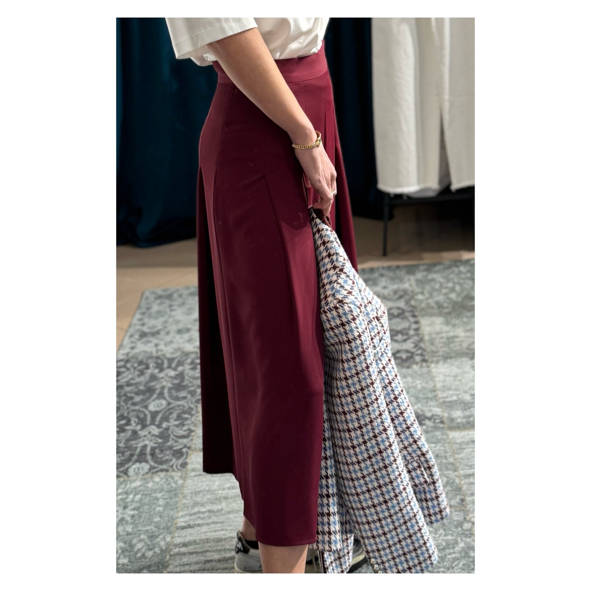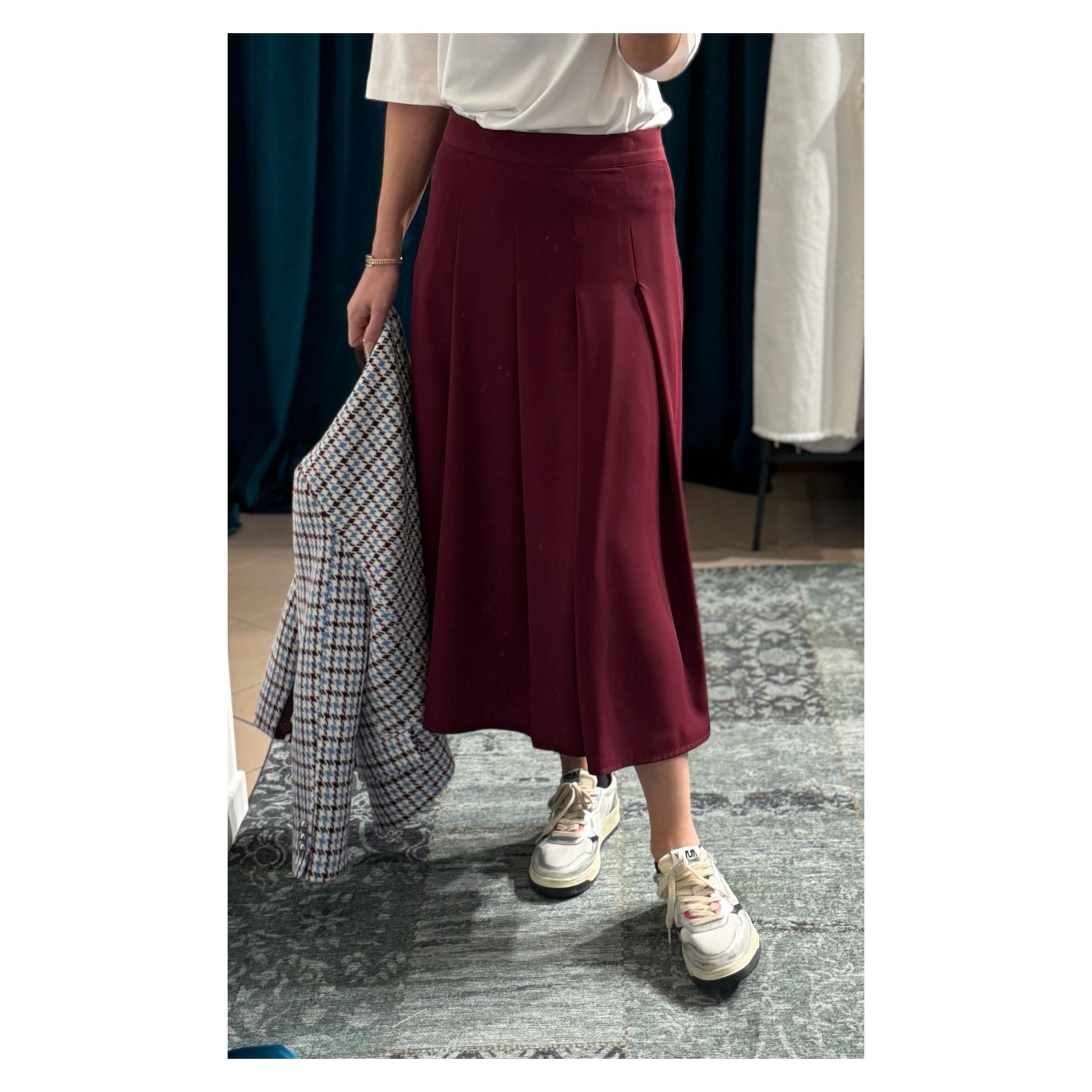 Gonna midi in misto viscosa con pieghe sulla parte inferiore. Modello chiuso con zip laterale senza tasche