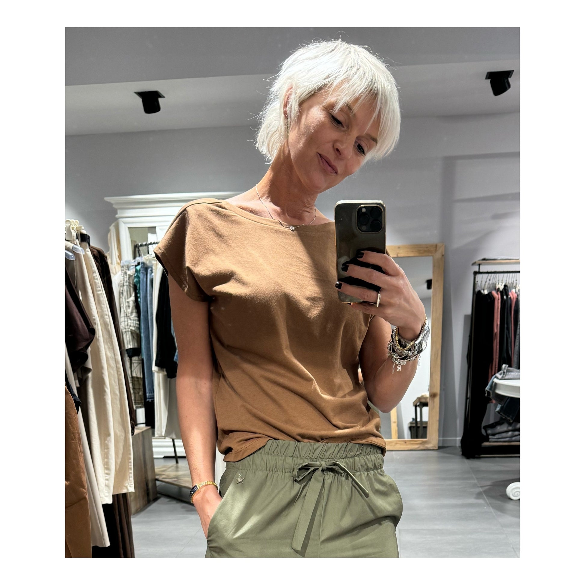 T-shirt in cotone girocollo con scollo a V sul retro. Vestibilità regolare