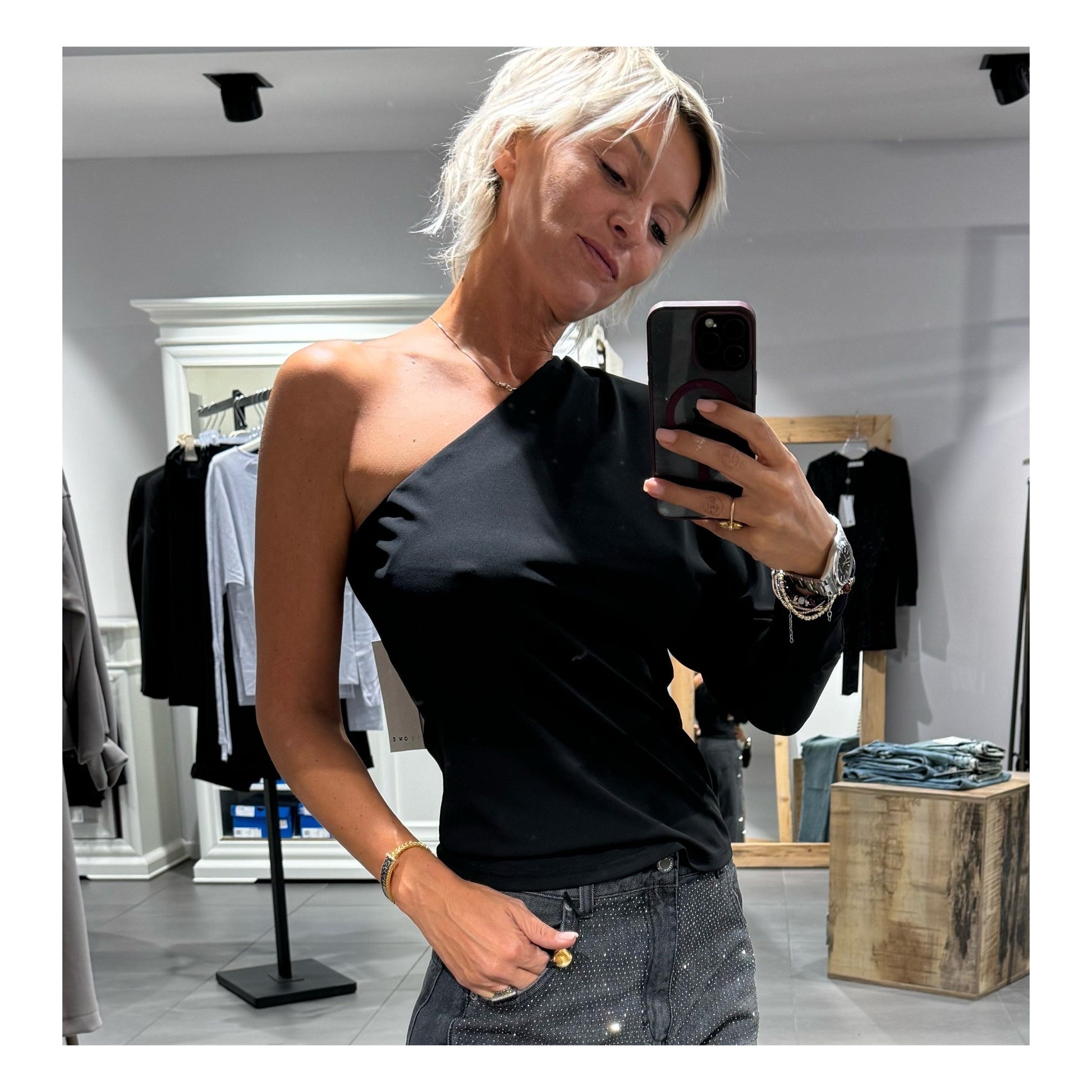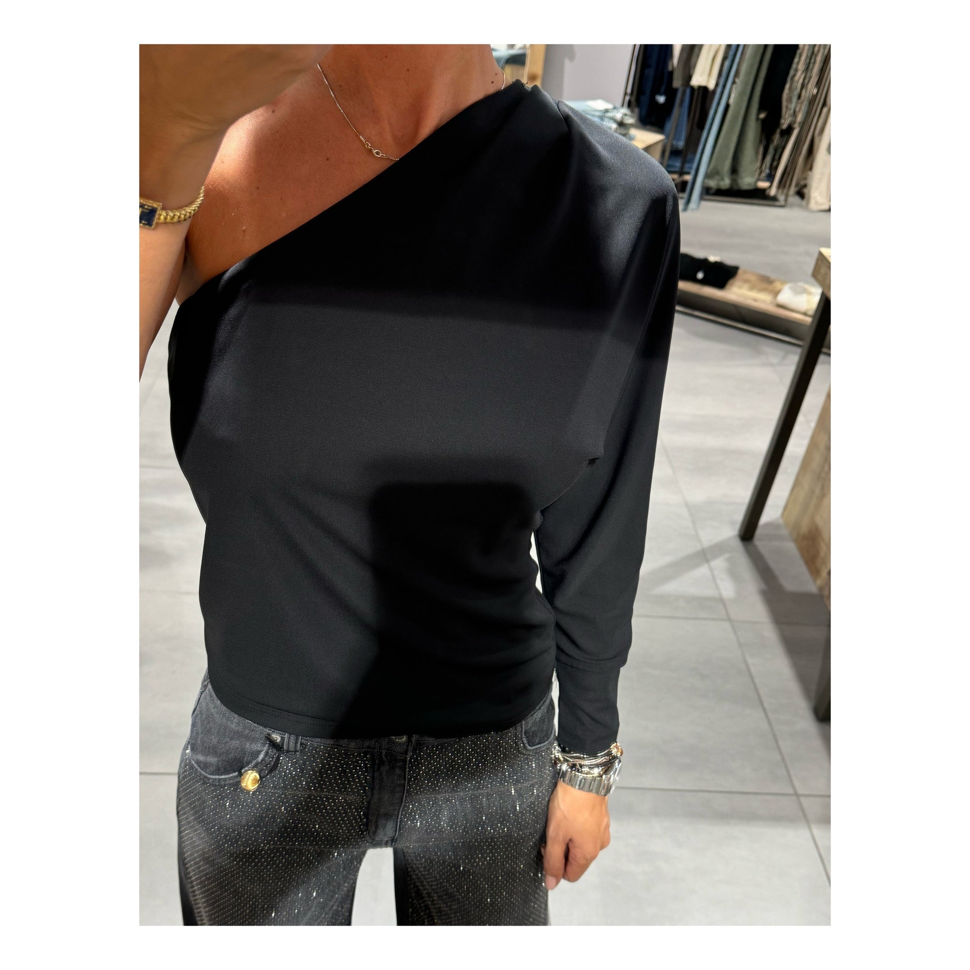 Top in jersey con arriccio delicato sulla spalla coperta e manica morbida.